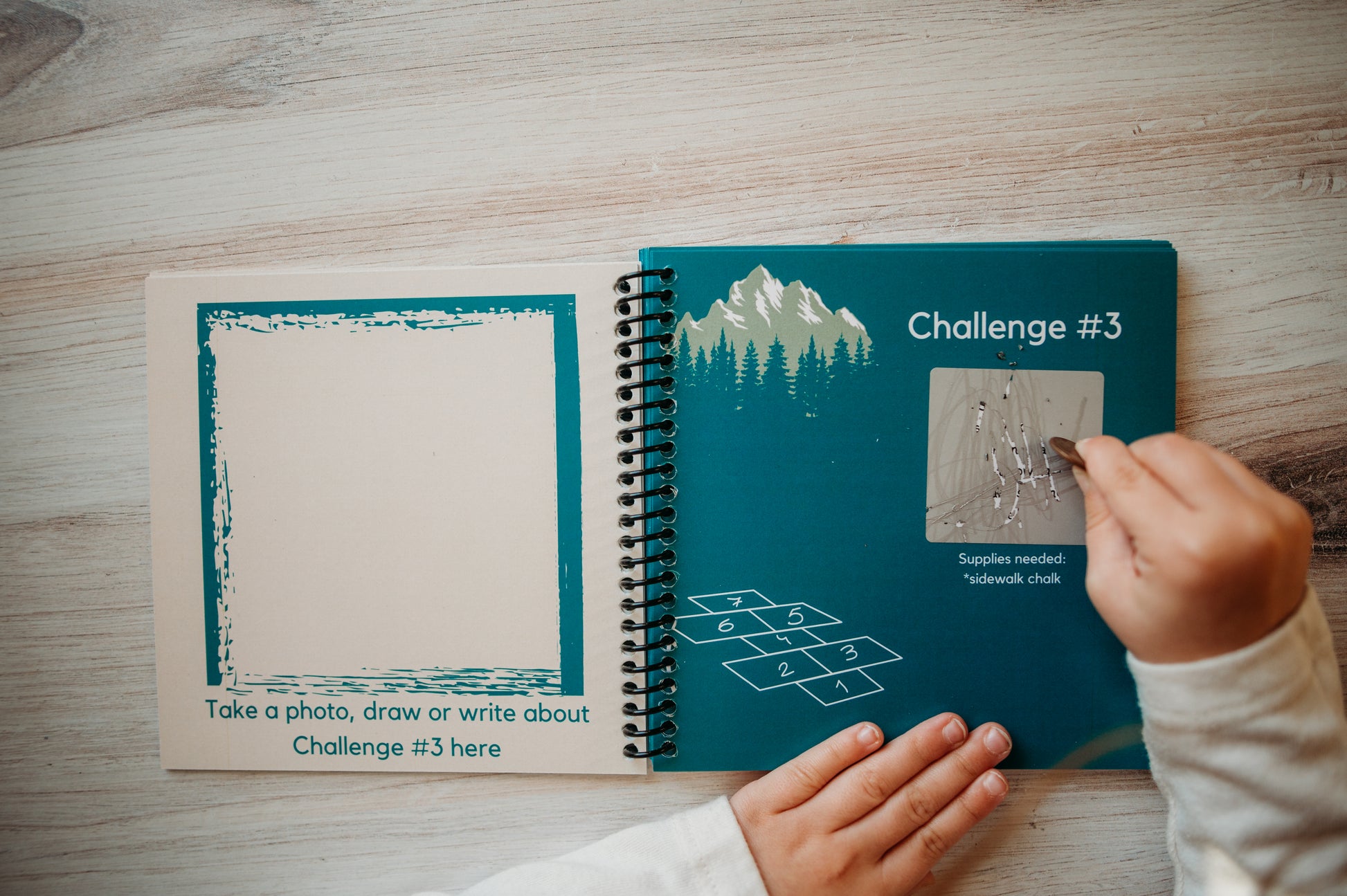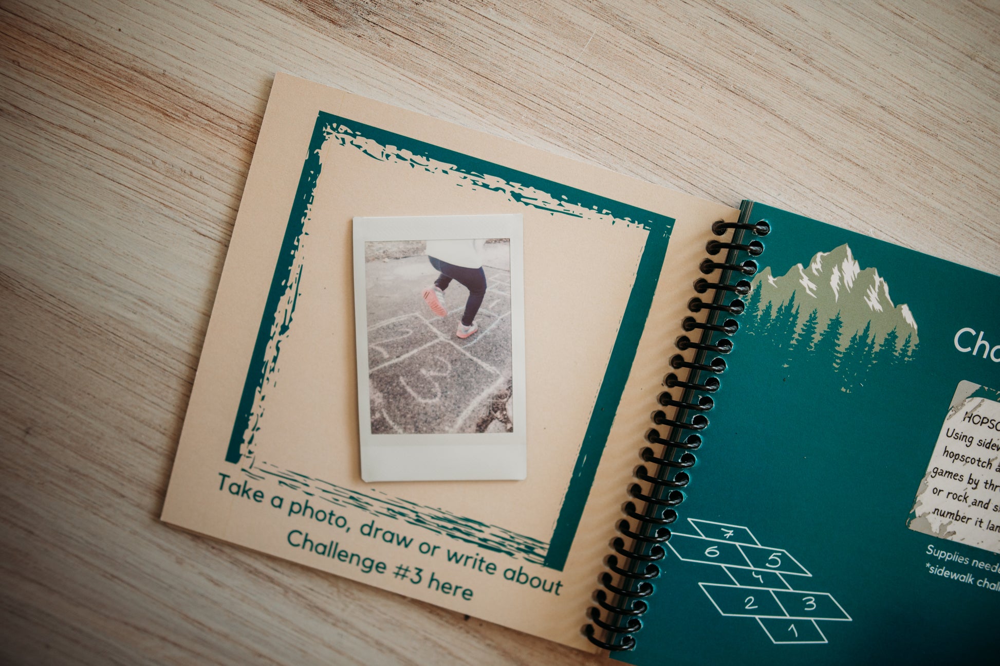 There is a photo box on the opposite page of each challenge to put a picture you’ve taken during the challenge, have the kids draw a picture of the activity, or write about your experience.